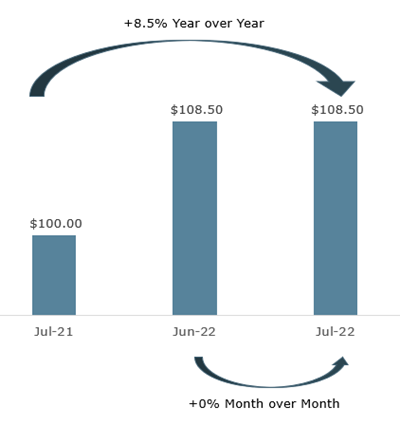 - Last week we had the first official report showing that inflation levels may have peaked. The consumer price index increased by 8.5% compared to the previous year and was flat compared to the prior month.